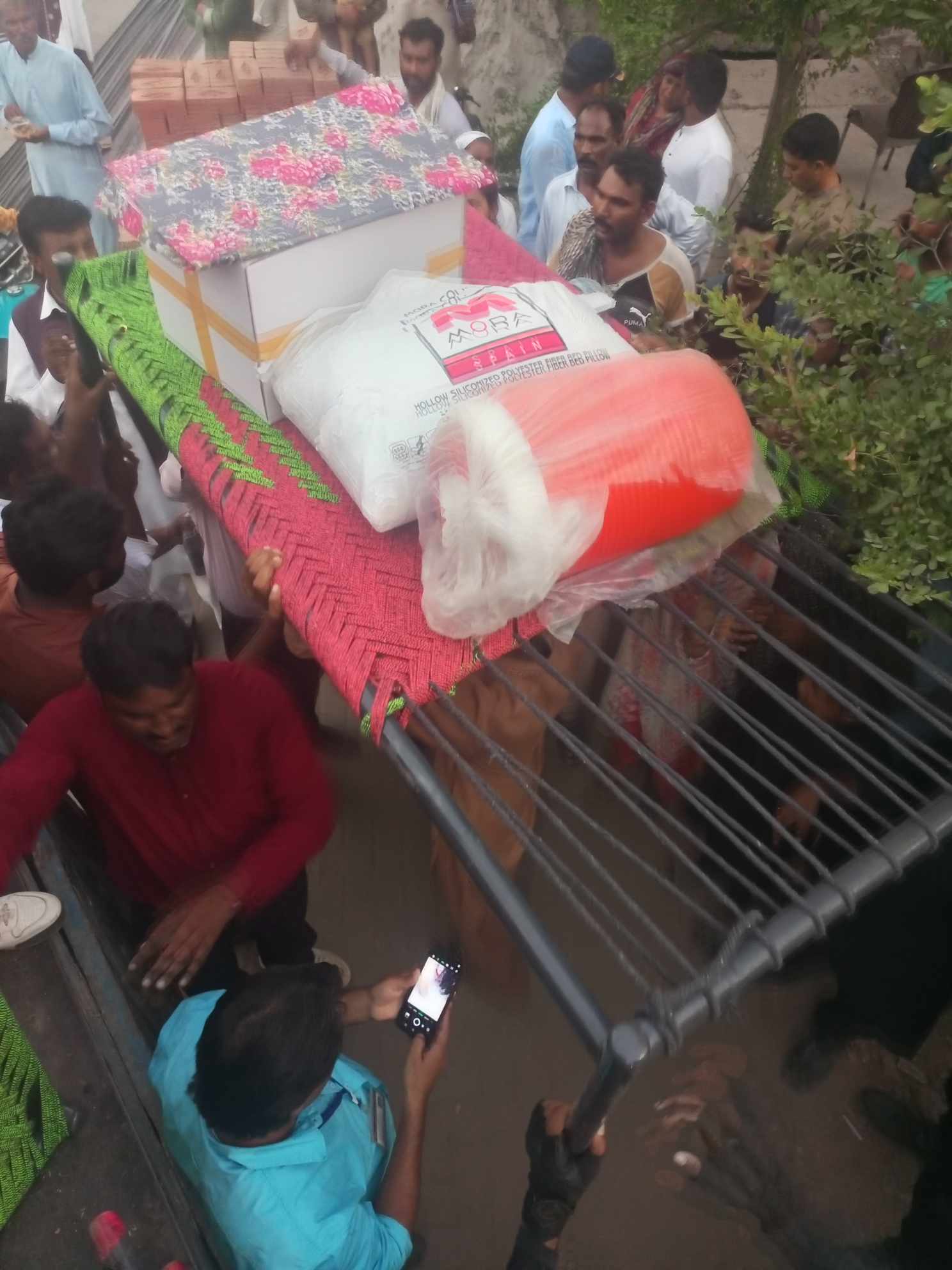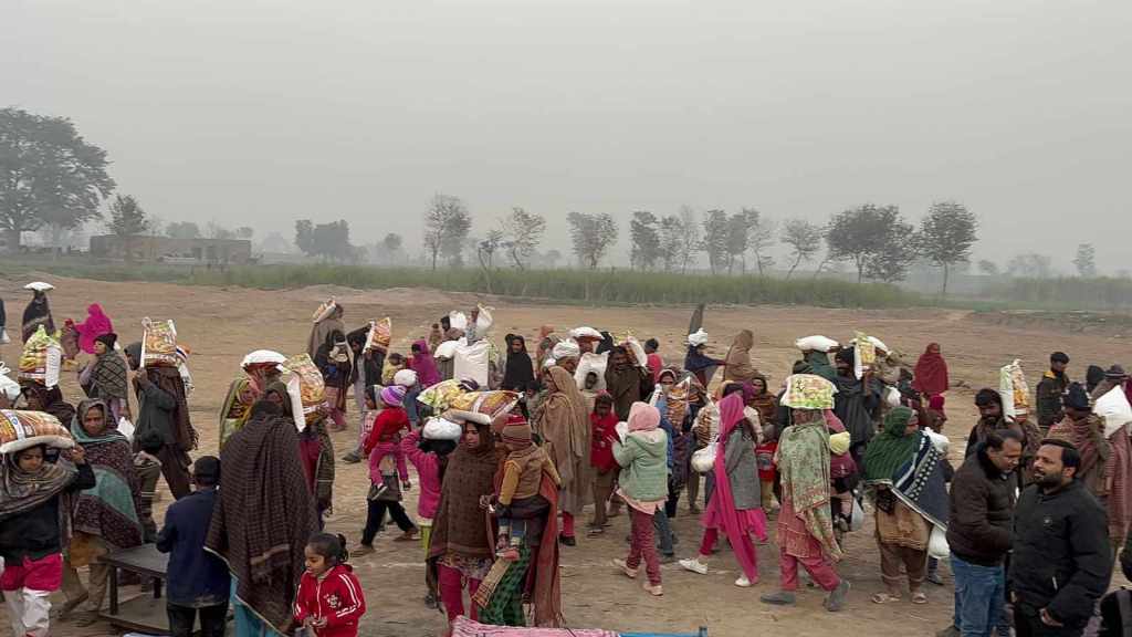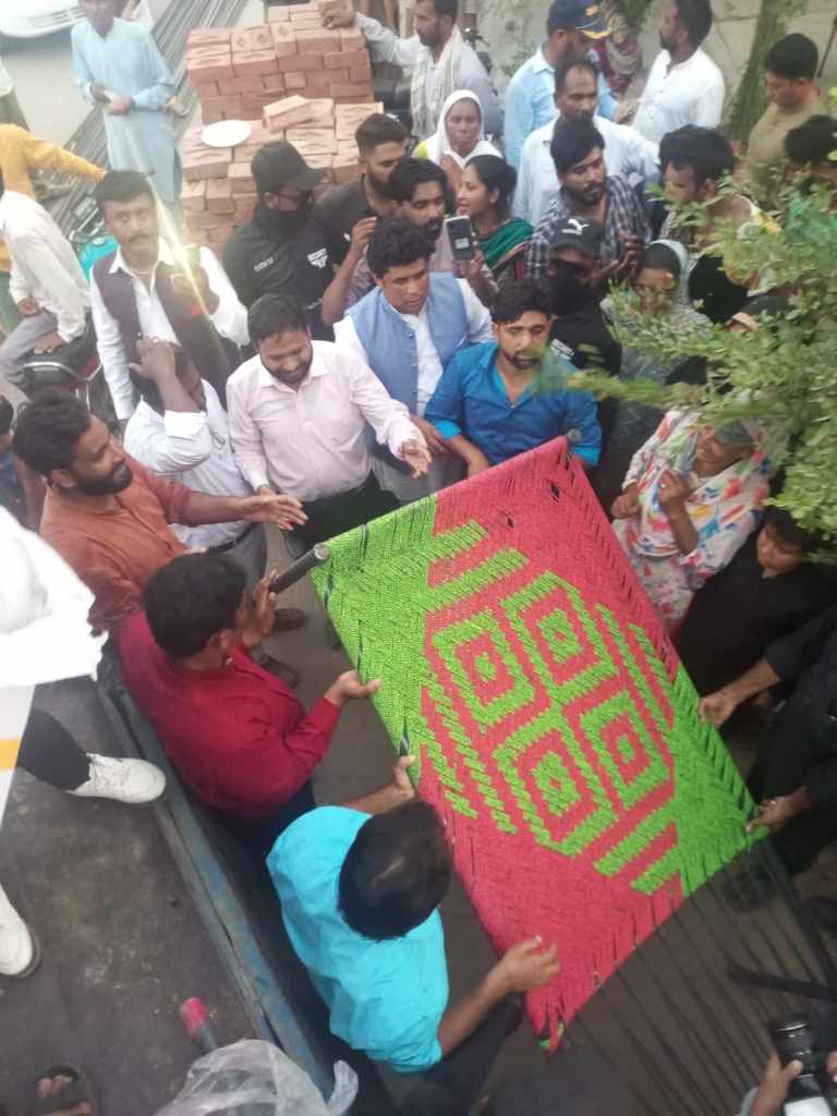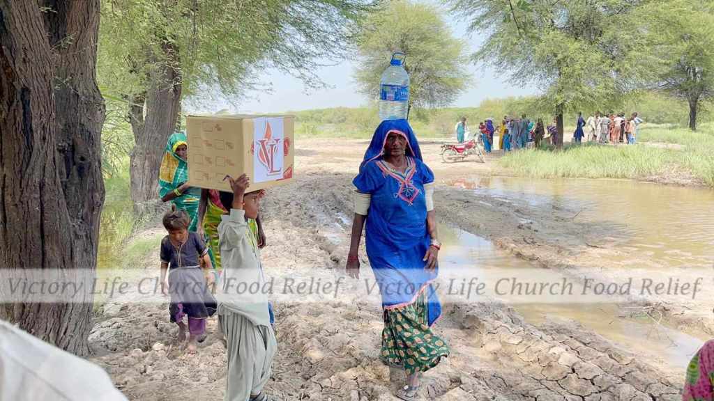 Victory Life Church and Ministries giving people rations for their homes including beds and groceries in Jaranwala, Pakistan.