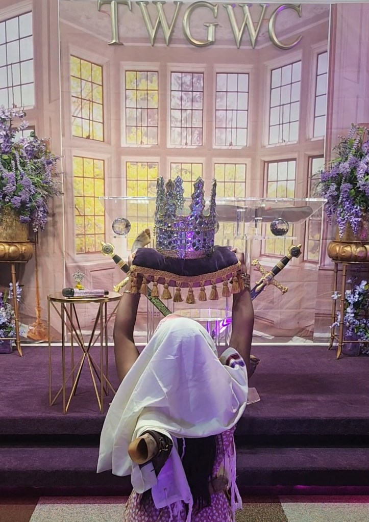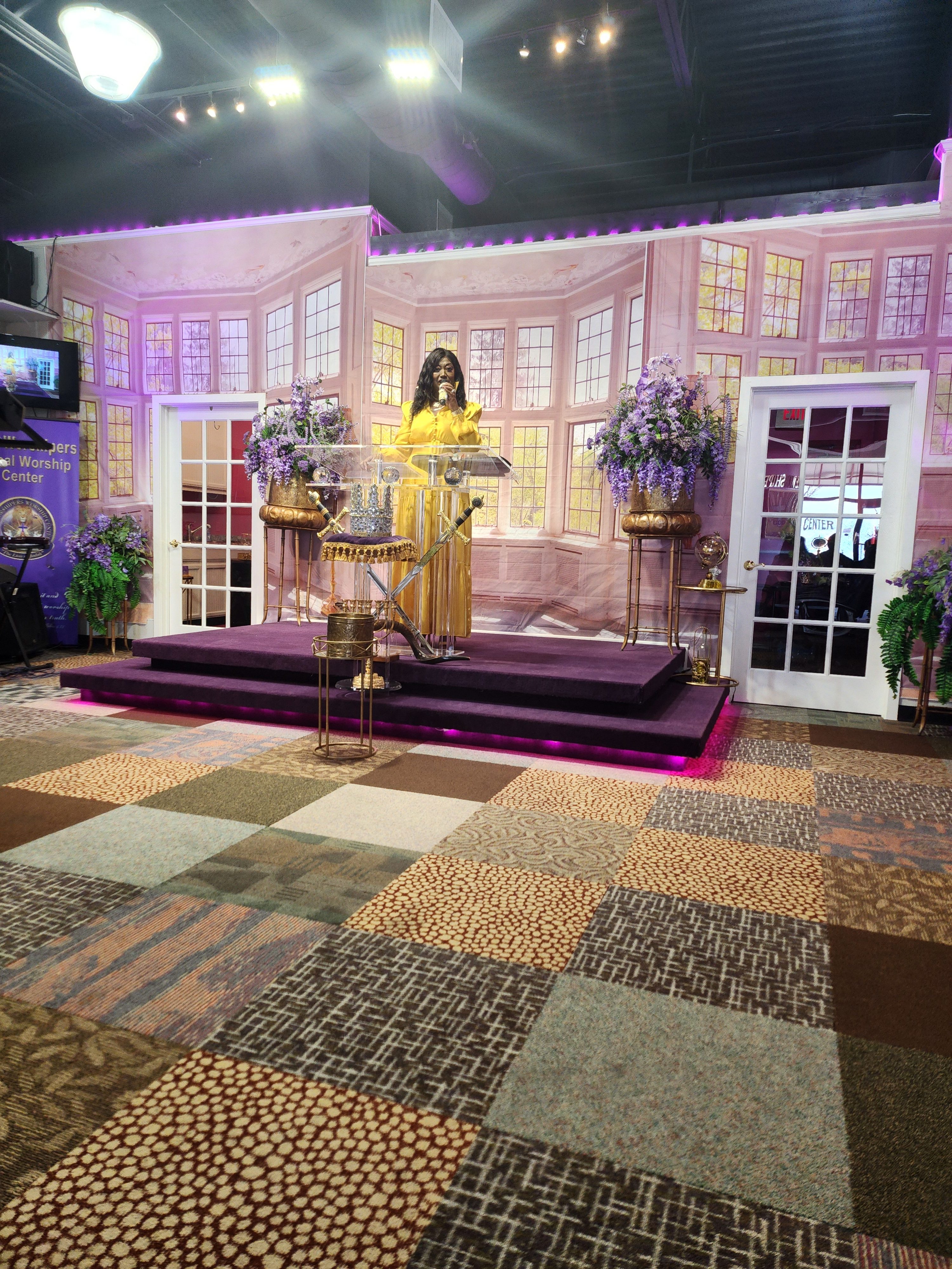 The set-up of True Worshipers contains one main color that cannot be ignored. The walls, the banners, the logo, the altar, the lighting, the chairs, the flowers, and even the very pillow that the crown rests upon contains this one color which is…purple.