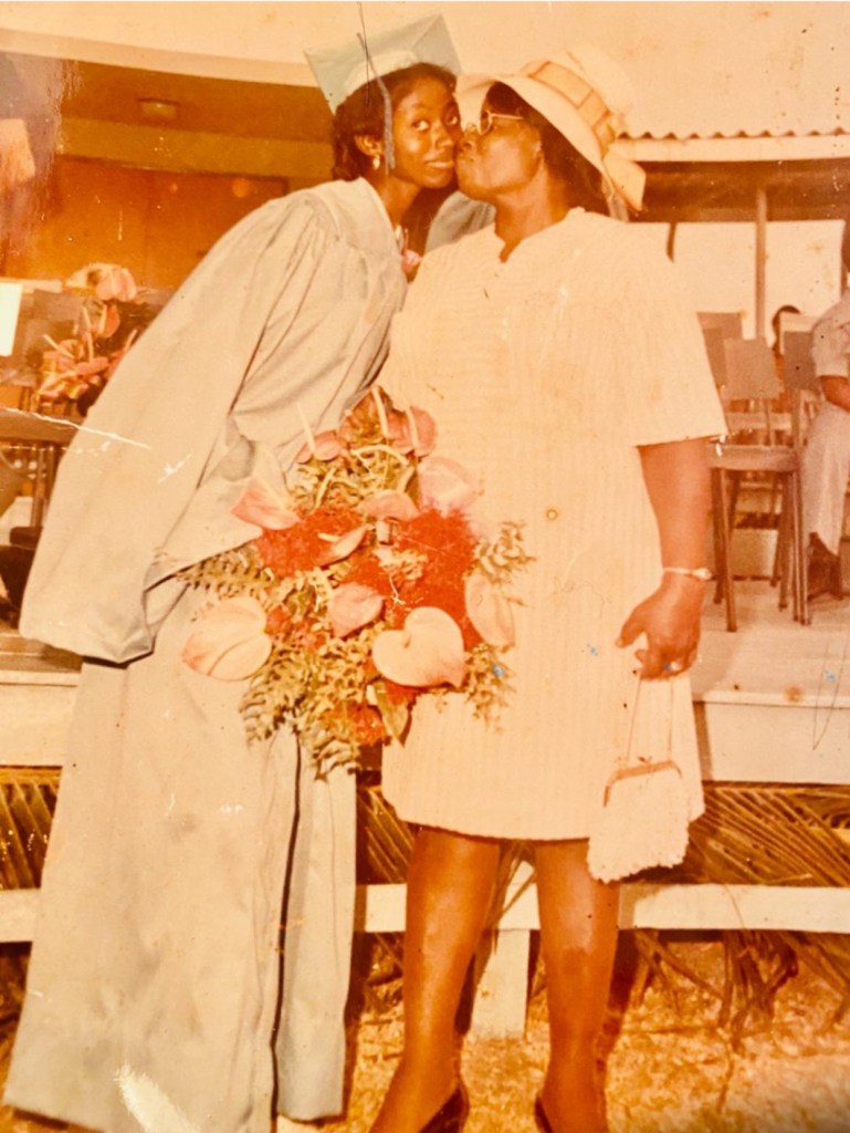 Apostle Margelee as a young graduate being kissed by her mother, Icilda