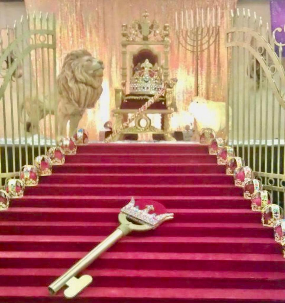 The Glory Explosion stage design includes the lion, the lamb, a staircase, 24 crowns, iridescent material, a golden key, an alabaster lamp, and more. The items are placed in the center of the Glory Explosion stage, with the worship band on one side, and the speaker’s podium on the other side. All of this simply reflects the symbolism of God being in the center of the conference and within the hearts of mankind.