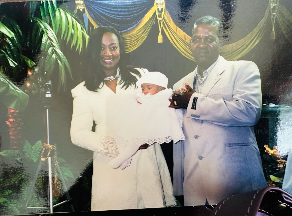 Apostle Margelee & Pastor Tony Hylton proudly hold their healthy baby girl.