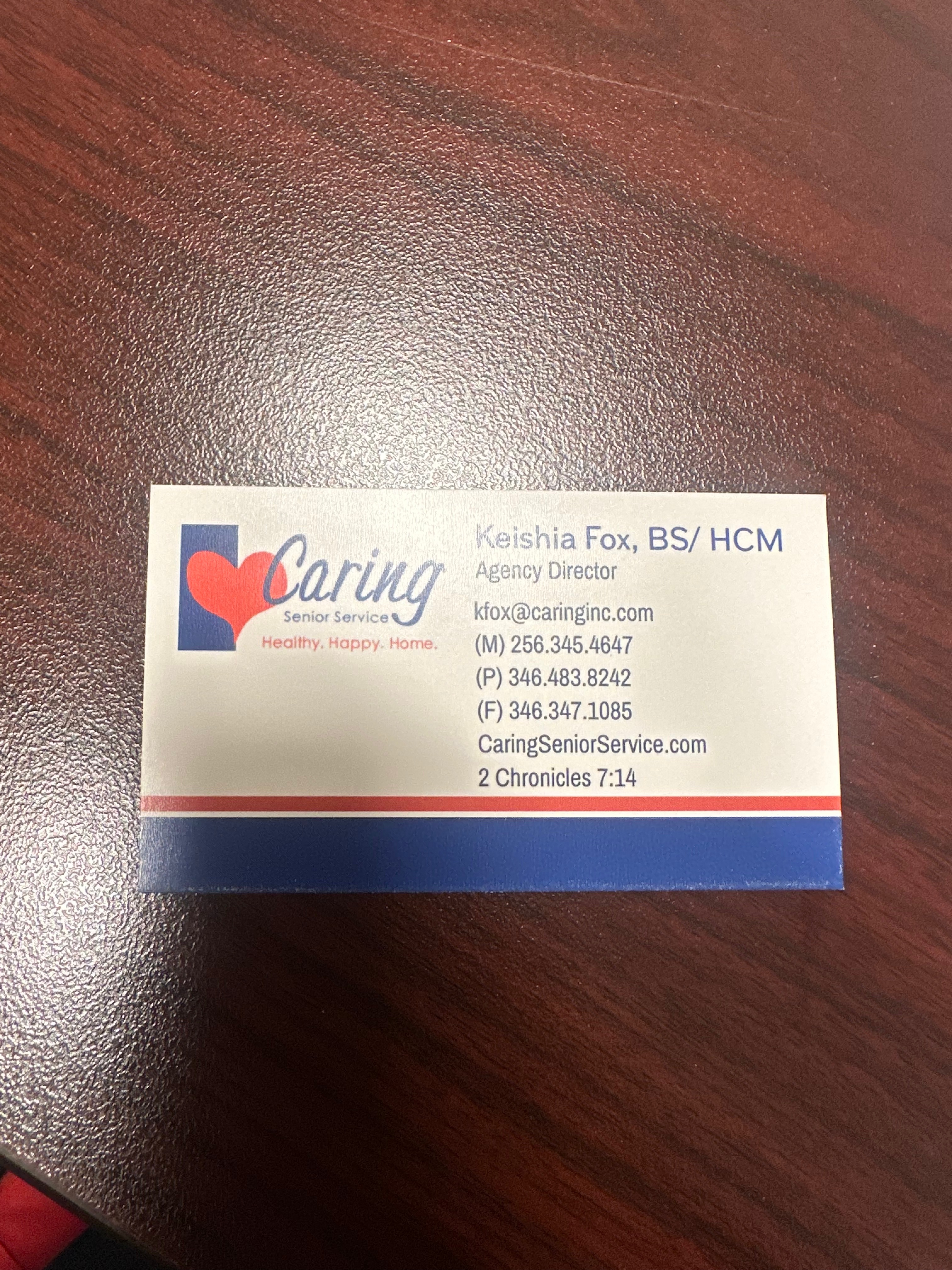 Prophetess Keishia Fox, Co-Owner and Agency Director of Caring Senior Service of Katy, Texas, a non-medical homecare agency with a brand of “Great Care,” is changing the marketplace by spreading love and care among the elderly and among the youth in the Katy area. They help the senior and elderly population with activities and daily living needs with a Caring Senior Service mission to provide “compassionate, personalized care to seniors.”