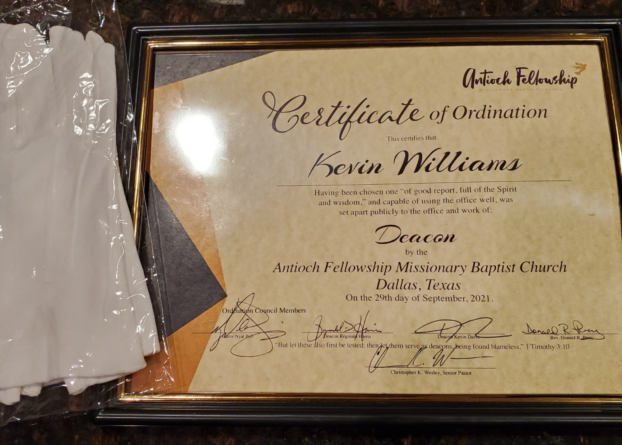 Officer Kevin is a long-time member of Antioch Fellowship Missionary Baptist Church in Dallas, Texas. On September 29, 2021, he experienced spiritual growth through his service within the church by being ordained as a deacon. He has attended this church for 34 years and is still going strong, which is as long as he has been in Dallas and within the police force. This is another clear example that demonstrates his character. He is a man of God who remains loyal to whatever he does and wherever he goes.